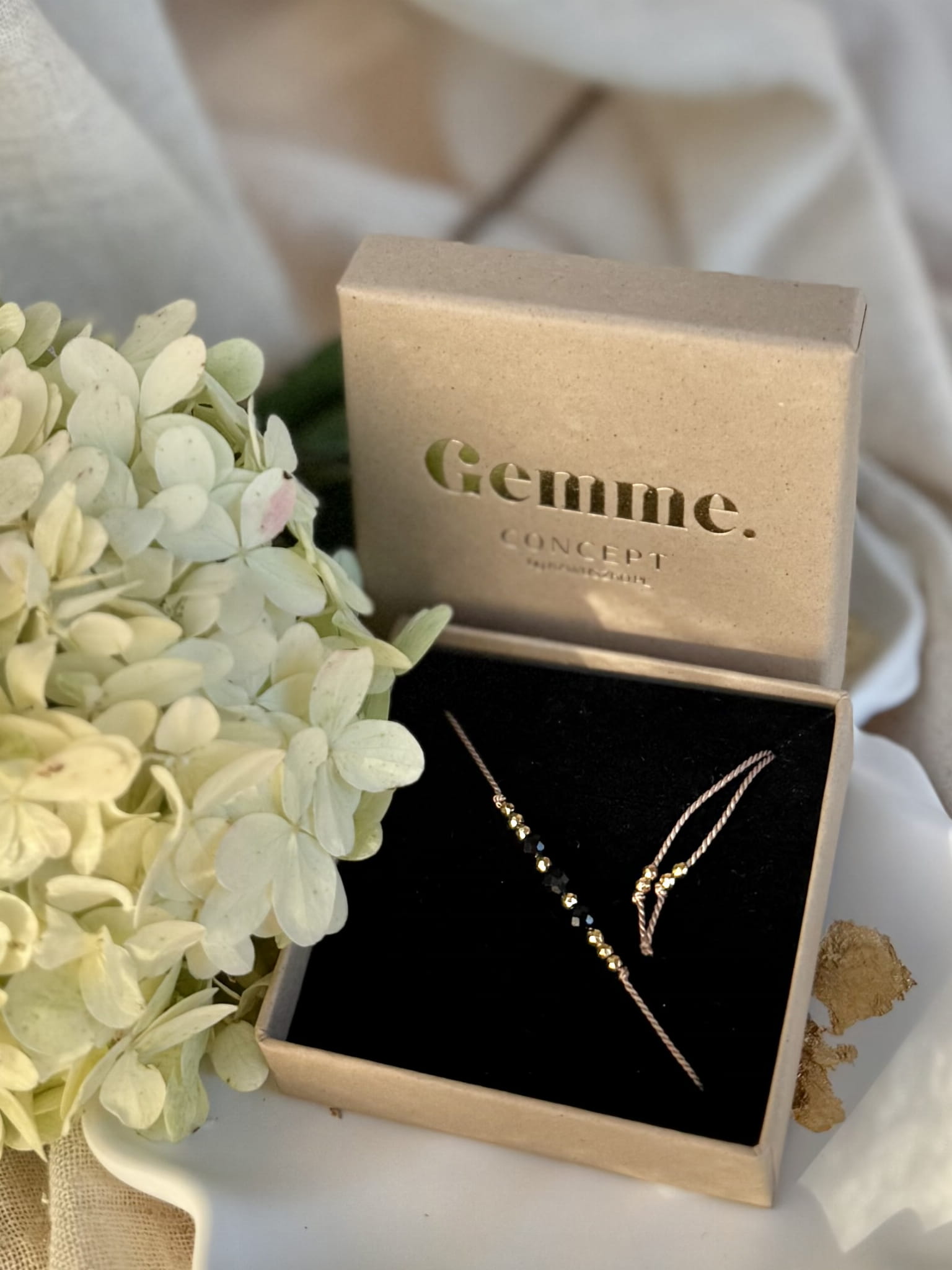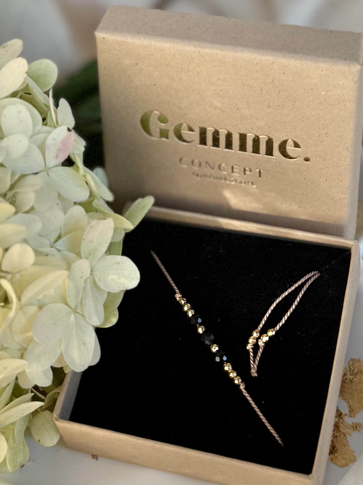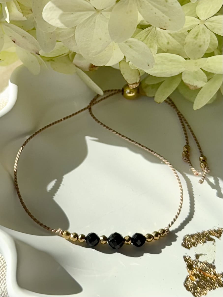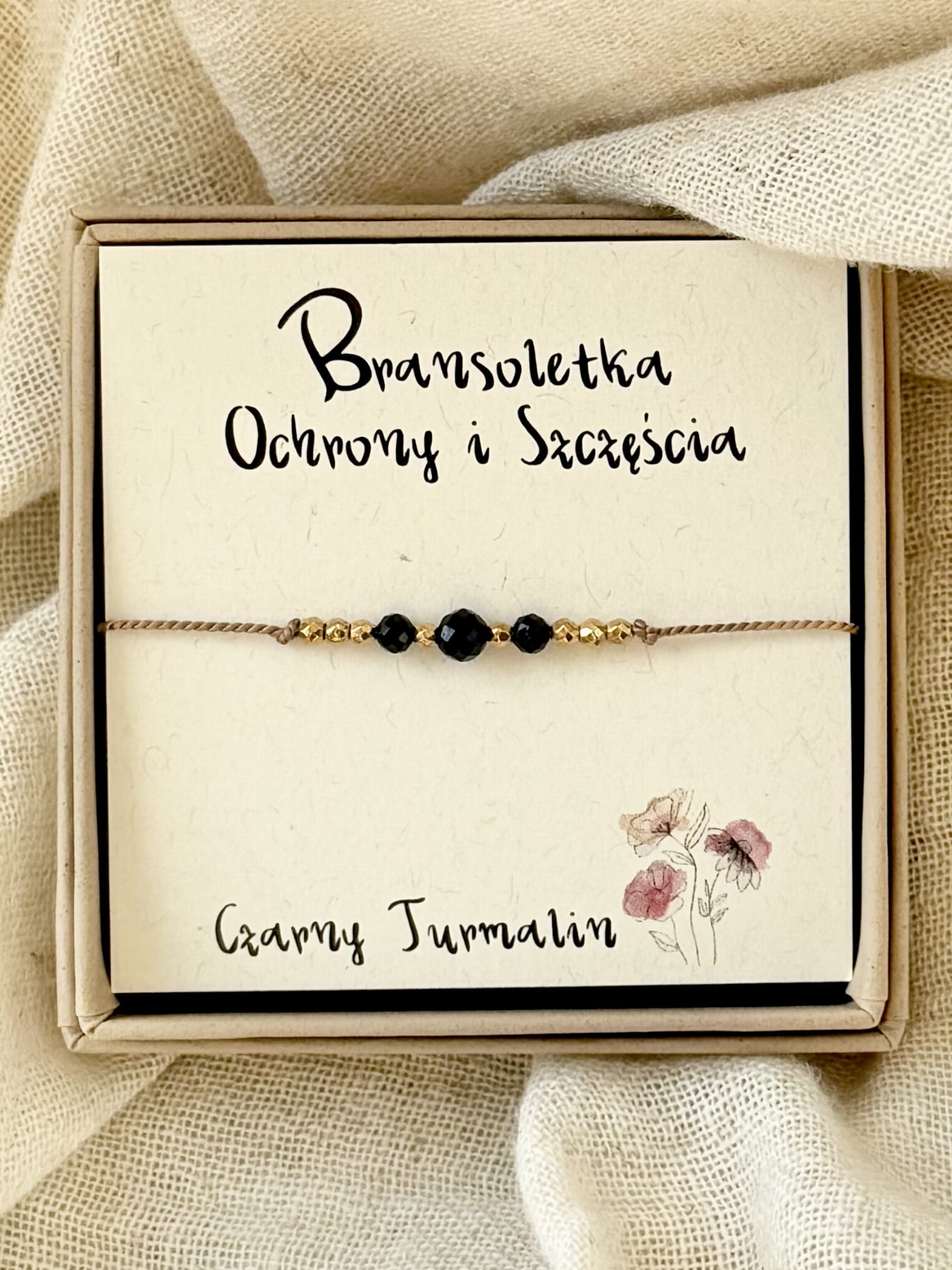Bransoletka NUDE SZCZĘŚCIA i OCHRONY ochronna z kamieni naturalnych TURMALIN na jedwabnej BEŻOWEJ regulowanej nici na Dzień Mamy dla Żony Dziewczyny Przyjaciółki NA SZCZĘŚCIE