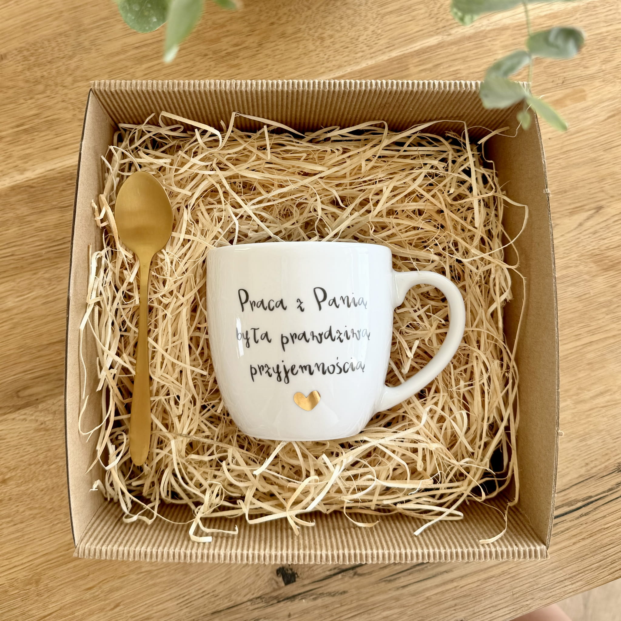 gotowy BOX Prezentowy kubek PRACA Z PANIĄ BYŁA PRAWDZIWĄ PRZYJEMNOŚCIĄ plus serce Łyżeczka Prezent dla nauczyciela