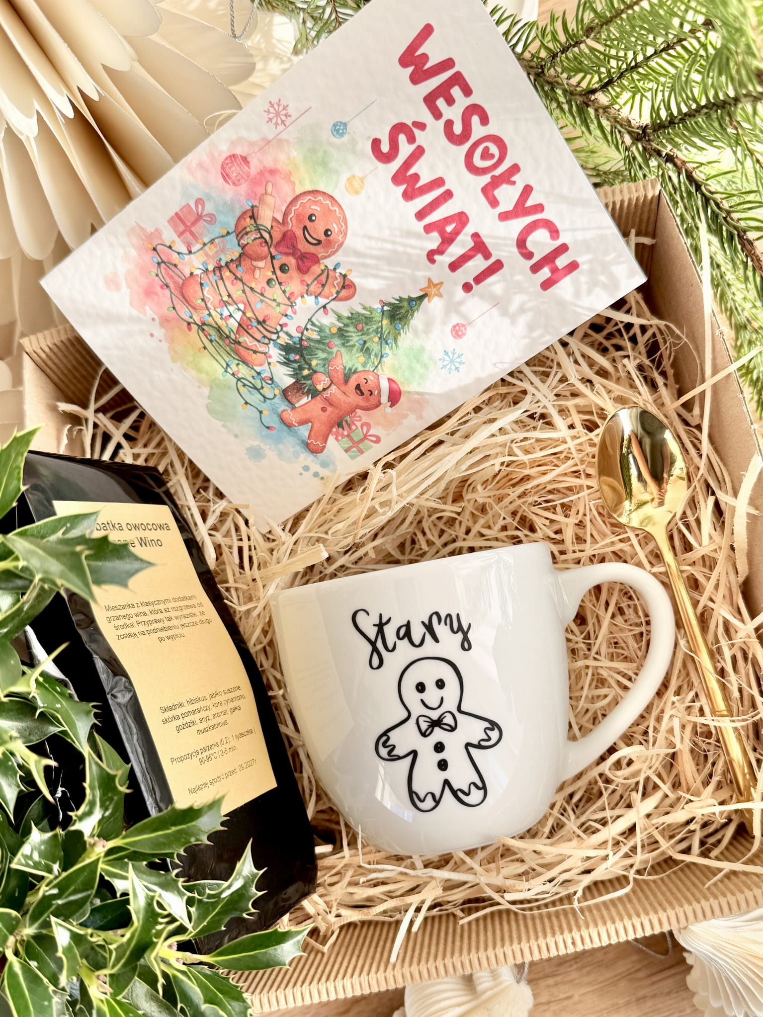 gotowy BOX ŚWIĄTECZNY Prezentowy kubek STARY Łyżeczka Herbata Prezent na święta GRATIS KARTA BOŻONARODZENIOWA