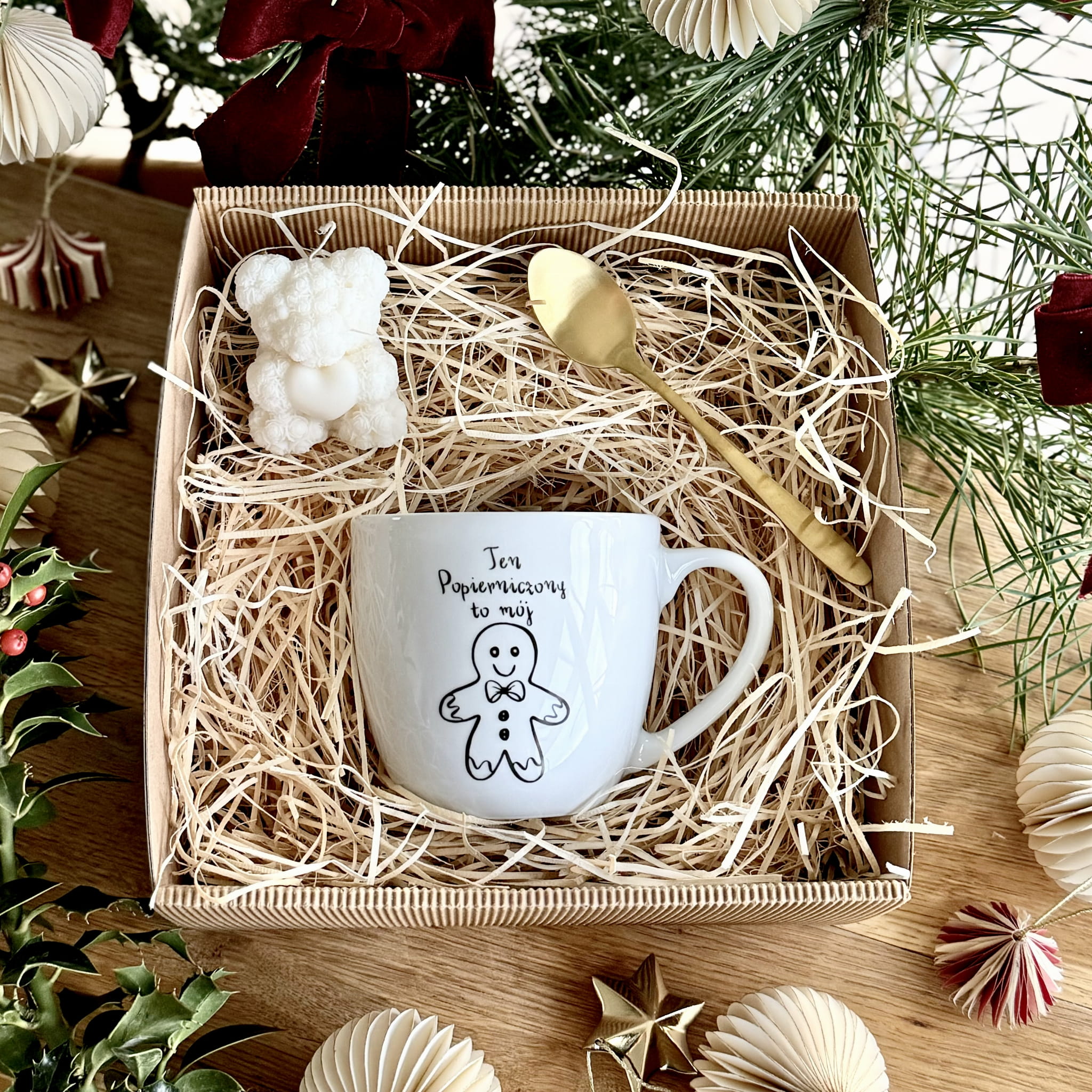gotowy BOX Prezentowy ŚWIĄTECZNY kubek TEN POPIERNICZONY TO MÓJ Łyżeczka Prezent na święta